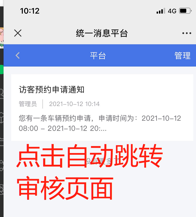 申请人发起申请后,部门管理员/校级管理员会收到消息,如下图: