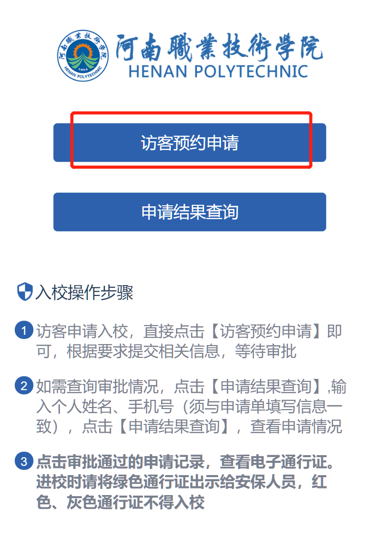 第五步,保卫处审核通过后,访客手机端查询显示为绿码,经门卫核验后即可进校;如果访客手机端查询显示红码或灰码,则为审核未通过,不得入校。
