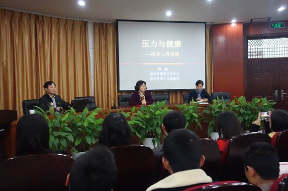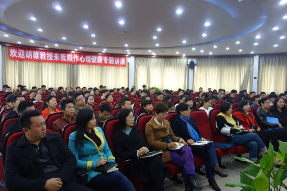 讲座中,胡教授从临床心理咨询与治疗工作的实际案例导入,从健康新观念,心理健康的定义,人的性格、需求、压力与健康的关系等方面进行了详细讲解。讲座在轻松、活泼、愉快的氛围中进行,现场不时爆发出热烈的掌声和欢畅的笑声。在场师生深受感触,表示要把学到的心理健康新理念,维护心理健康的方法,宣泄疏导情绪的技巧应用到实际工作和生活中去。(供稿:温娟娟,审稿:王黎明)