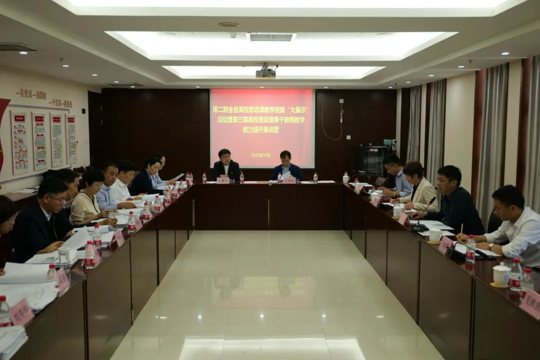 15日分别召开了第二期全省高校思政课教学技能“大展示”活动暨第三期高校思政课骨干教师教学能力提升集训营评审工作推进会、参赛选手材料评审工作会以及活动预备会。