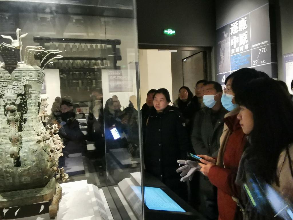 在博物院主展馆,支部党员教师认真参观了河南博物院所陈列的文化遗产,对于中华民族悠久的历史有了深刻的了解,更加坚定了文化自信,也为今后的思政课日常教学工作提供了珍贵的文化素材。