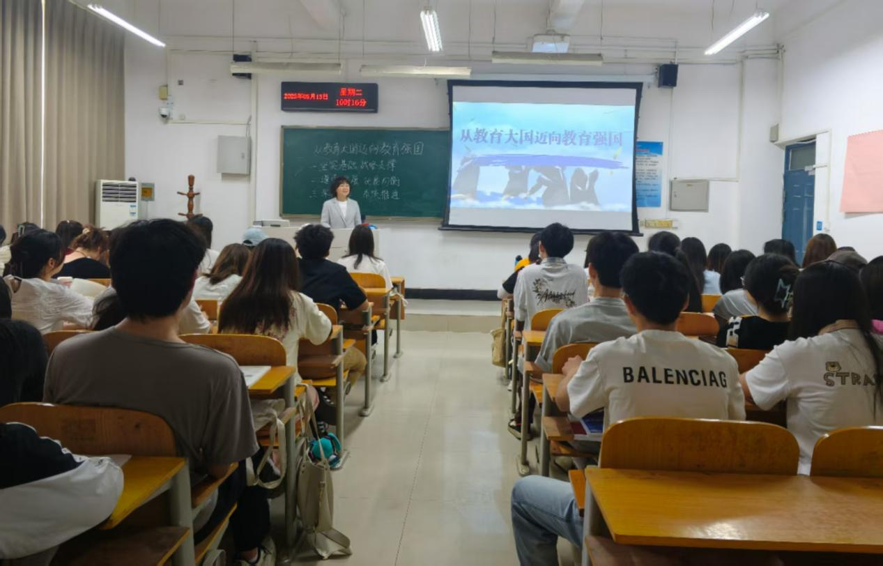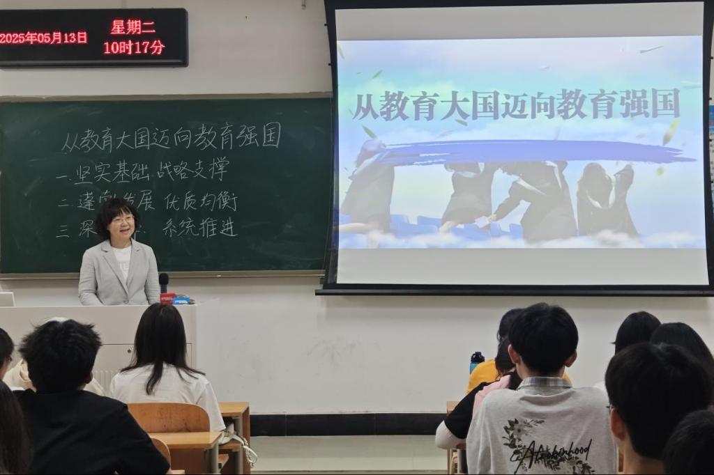 肖珑以《从教育大国迈向教育强国》为主题,从同学们的现实关注点出发,紧扣今年全国两会上关于教育强国的相关论述和《教育强国建设规划纲要(2024—2035年)》文件精神,围绕新时代新征程“为什么要建设教育强国、建设什么样的教育强国、怎样建设教育强国”等问题,深入剖析了建设教育强国的重大意义,以翔实的数据展现我国建成全球最大规模高质量教育体系的实践底气,强调了教育成果要惠及全体人民等教育强国建设举措。