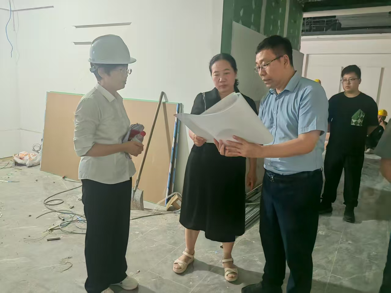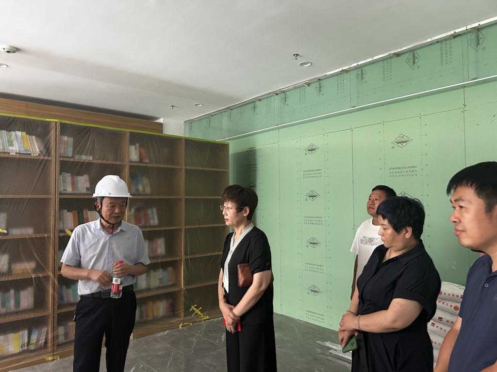 为确保思政教育基地项目顺利推进,暑假期间,公司党委副书记、工会主席田华、副董事长李玉峰多次到图书馆二楼调研思政教育基地建设情况,并就后续建设工作提出明确指导和要求。