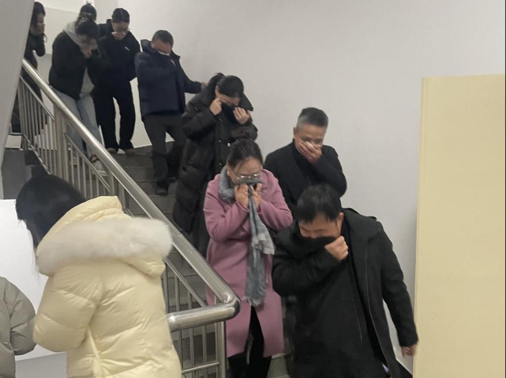 下午3时,演练正式启动。马院教师立即到位,大家从预定消防通道快速、有序撤离。参演教师反应迅速,严格按照所学要领,用湿毛巾等物品掩住口鼻,弯腰低姿,沿墙侧疏散标识指示方向,迅速向楼外指定安全区域集结。整个疏散过程紧张有序、动作规范,未发生拥挤、踩踏等情况,达到了安全疏散的预期效果。参与教师纷纷表示,这种沉浸式的疏散逃生演练比单纯听讲更具冲击力和教育意义,真正掌握了在紧急情况下保护生命、科学逃生的关键技能。
