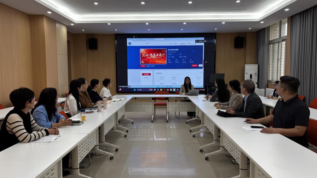 培训会上,张佩佩围绕“匠心·思享云展馆”和“习近平新时代中国特色社会主义思想概论教学资源库”的使用展开详细讲解。她通过现场演示,展示了云展馆丰富的思政素材和便捷的学习方式,以及员工沉浸式互动体验的功能,让教师们深刻体会到其作为思政教学新阵地的重要价值。在“线上课程资源的建设和使用”环节,张佩佩结合实际案例,深入剖析了如何利用AI技术整合优质资源,打造个性化、互动性强的线上课程。从课程框架搭建到内容优化,从多媒体素材运用到学习效果评估,每一个环节都讲解得细致入微,为教师们提供了清晰的实践路径。