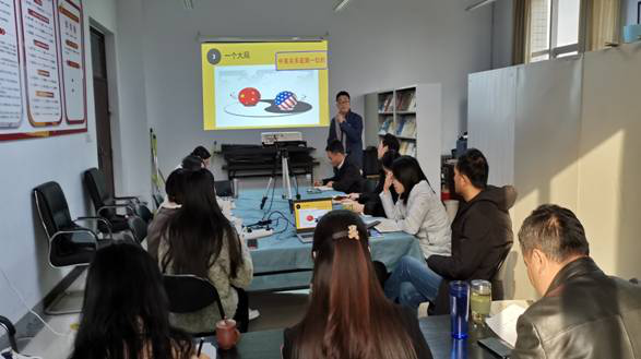 12月5日下午2:30,思政部全体教师在402会议室召开集体备课会,帖琳娜老师和胡海涵老师分别就《马克思主义中国化及其发展》、《弘扬中国精神》等内容进行了展示。