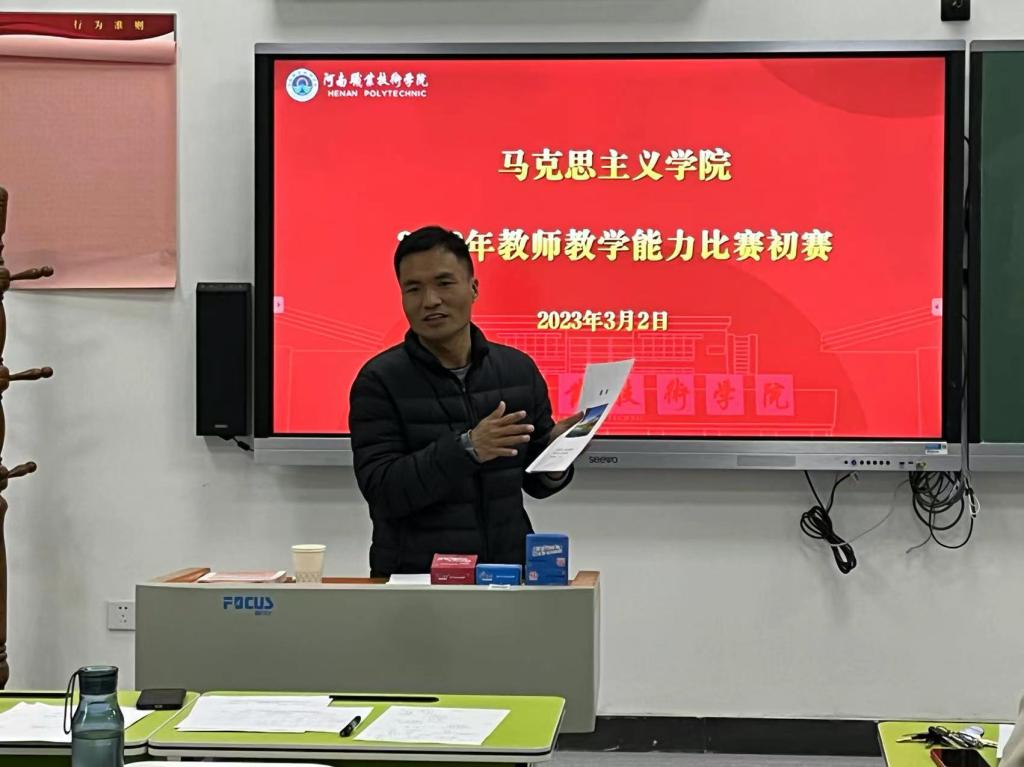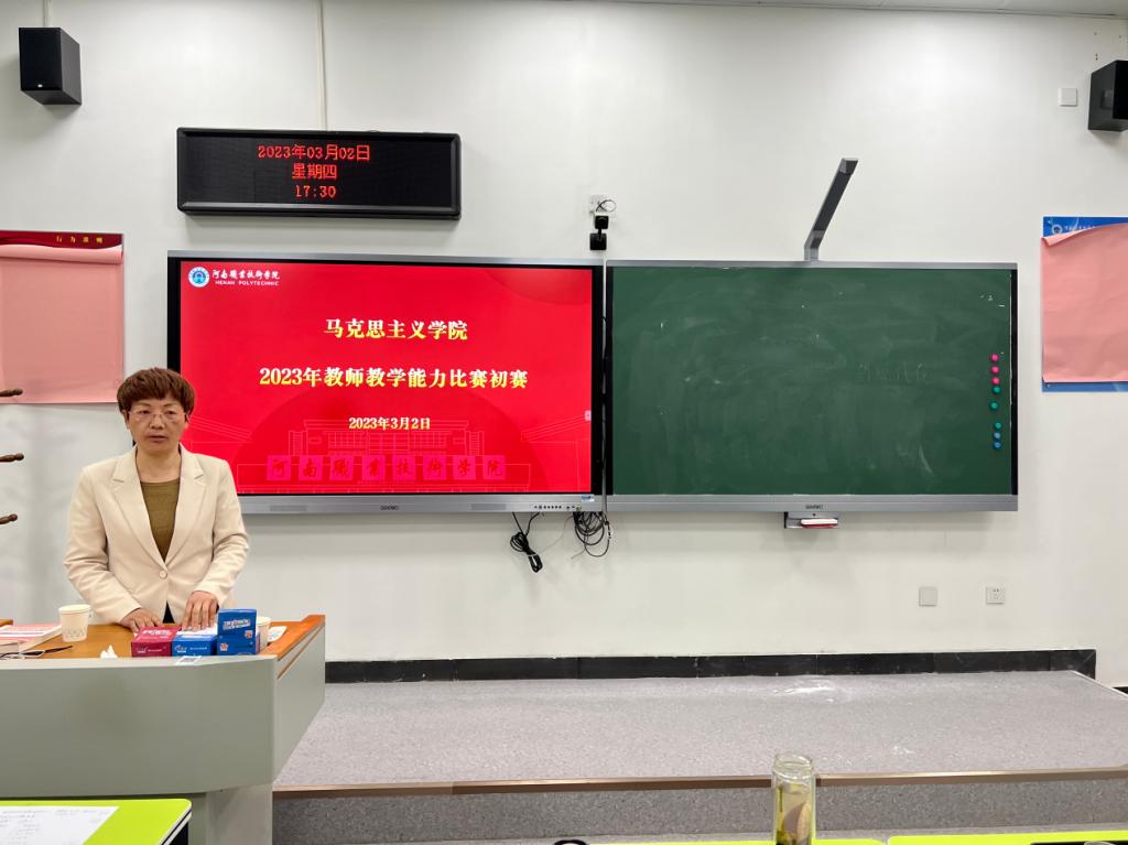 为进一步提升教师教学能力,促进教师综合素质、专业化水平、信息化教学水平和创新能力全面提升,根据《bw必威西汉姆联官方网站教务处关于开展2023年教学能力比赛的通知》文件要求,bw必威西汉姆联官方网站3月2日在3309教室举行了2023年教师教学能力比赛初赛,马院领导班子及各教研室主任担当评委,比赛由副经理胡海涵主持,全体思政课教师观摩。