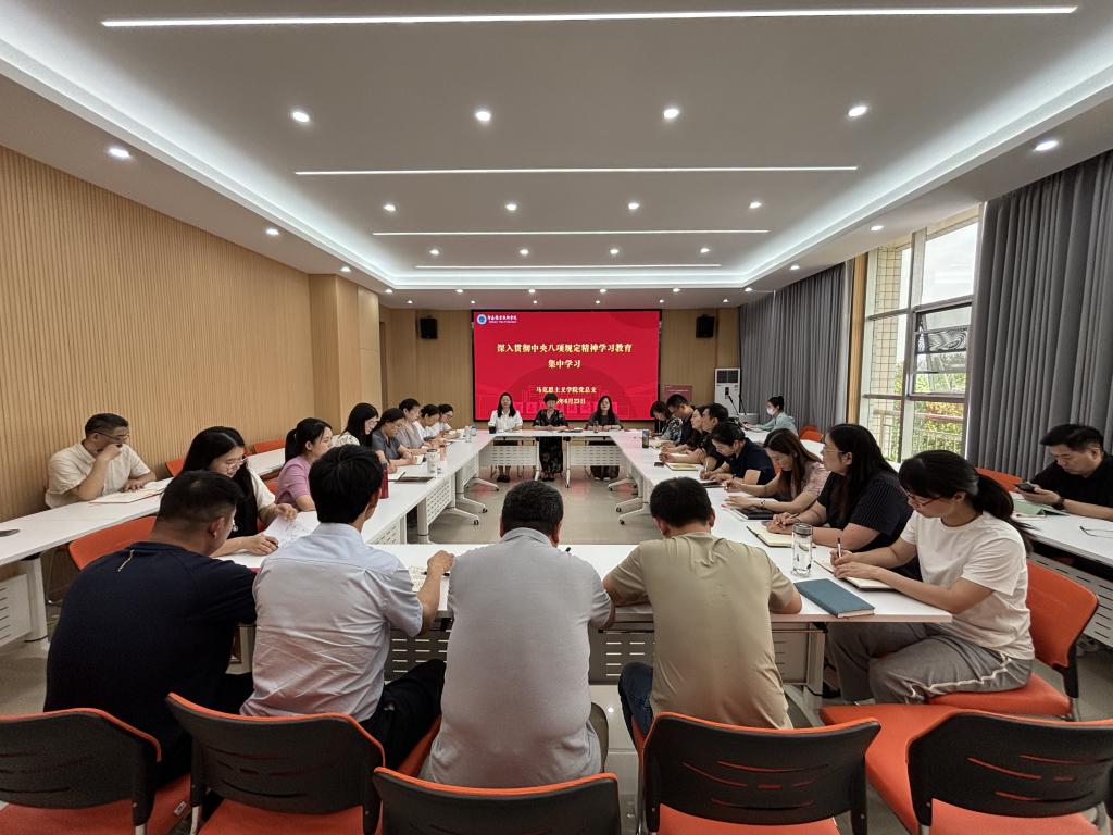 6月23日,马克思主义党总支在行政楼510会议室召开深入贯彻中央八项规定精神学习教育第七次集中学习会,认真学习了习近平总书记重要讲话精神,并就“作风建设大家谈 检视问题面对面”专题交流发言。学院全体党员教师参会,会议由党总支书记、经理梁杰主持。