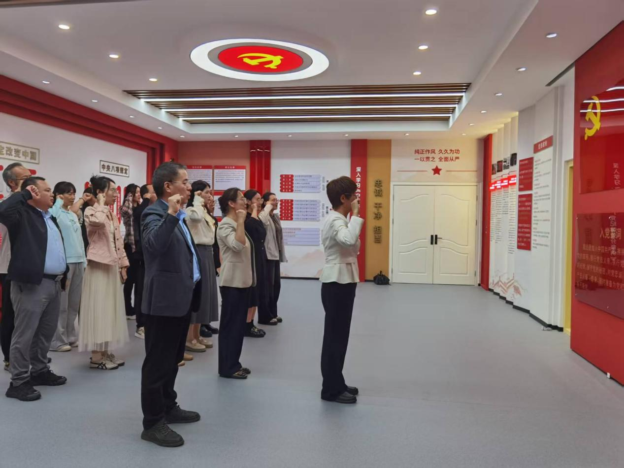 最后,党总支书记梁杰带领全体党员面向党旗,庄严举起右拳,重温入党誓词,进一步坚定了党员们的理想信念和初心使命。