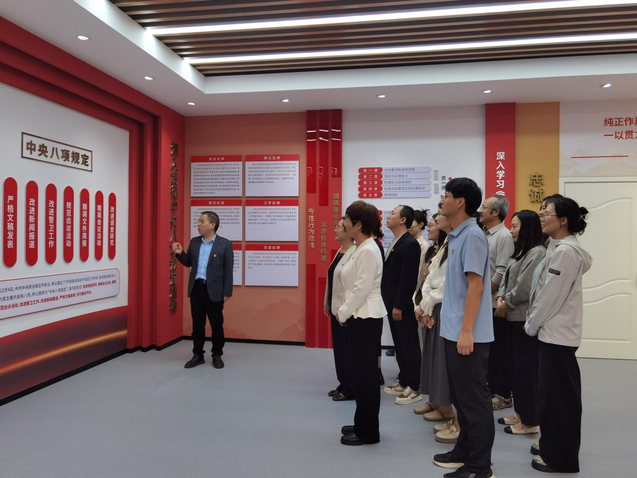 在讲解员的引导下,党员们依次参观了“重温入党誓词与党员权利义务”“党的纪律建设百年历程”“《中国共产党纪律处分条例》与新时代好干部标准”“中央八项规定精神及其深远影响”“学校领导干部‘十不准’规定”以及“《党政机关厉行节约反对浪费条例》与《中国共产党廉洁自律准则》”等六大展区。通过讲解,大家深化了对党风党纪建设重要性的认识,深刻领会了中央八项规定精神实质和丰富内涵。