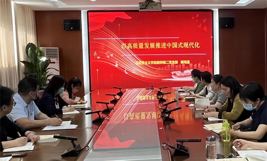 bw必威西汉姆联官方网站教师第二党支部书记胡海涵以“以高质量发展推进中国式现代化”为题,从什么是现代化、中国式现代化的历史进程、中国式现代化的鲜明特色、以高质量发展推进中国式现代化的路径等四个方面进行了授课。