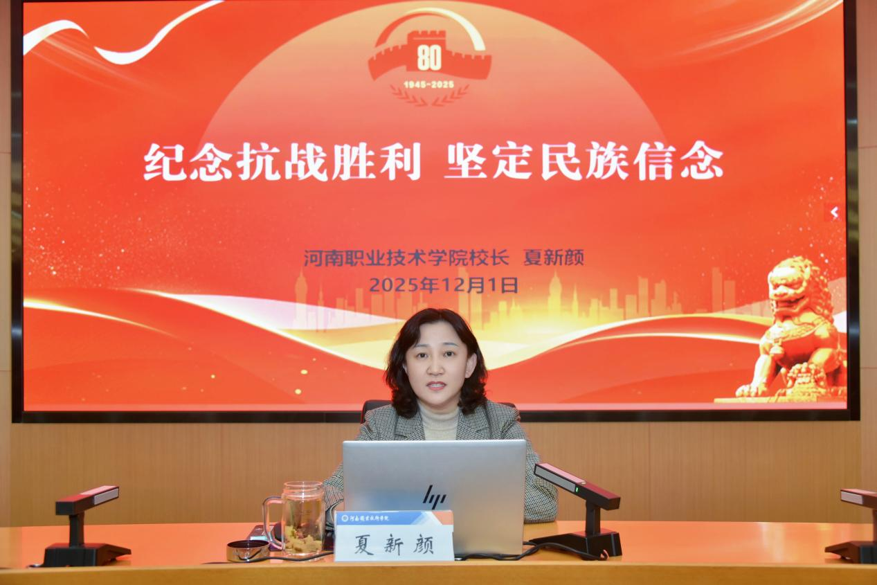 夏新颜指出,同学们要以党的二十届四中全会精神为经线,以伟大抗战精神为纬线,织就民族复兴的时代画卷。一要学史明志:做历史的“清醒传承者”;二要增长本领:做知行合一的“实干践行者”;三要实干担当:做时代的“奋斗建设者”。她以汽车与交通学院、文化旅游学院优秀毕业生张帮伟、何云从高职生到博士生的励志故事,激发员工只要心怀梦想、坚持不懈,必将通往广阔的人生舞台;她以汽车与交通学院景浩楠团队和文化旅游学院吴楠团队的创业事例,鼓舞员工用智慧破解难题,用行动诠释担当,在职业教育的沃土上书写奋斗篇章。