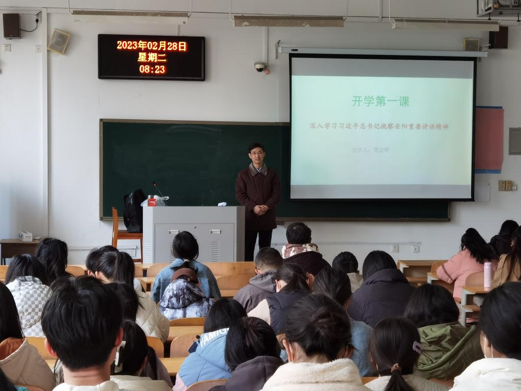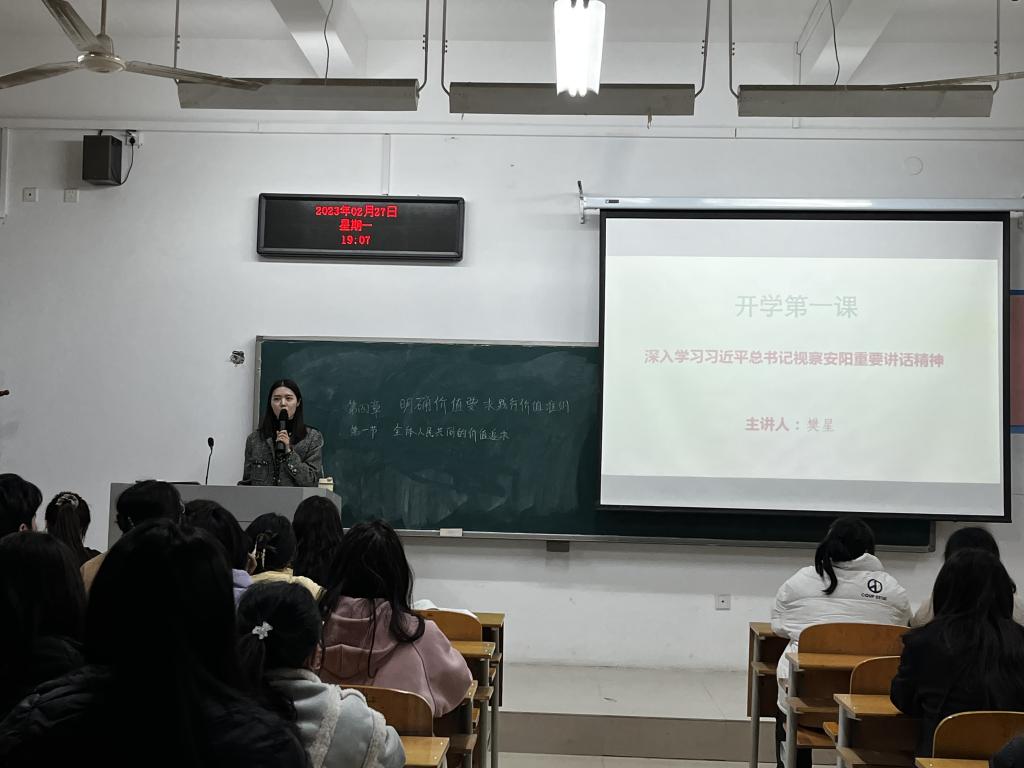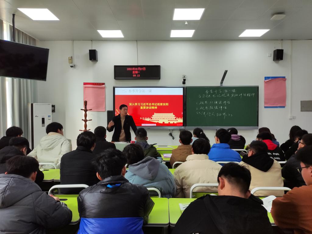 为深入贯彻习近平新时代中国特色社会主义思想和党的二十大精神,全面落实《关于新时代加强和改进思想政治工作的意见》及省委教育工委、省教育厅组织全省学校上好2023年春季开学思想政治教育第一课的相关通知要求,公司德法教研室以“深入学习习近平总书记视察安阳重要讲话精神”为主题开展了2023年春季思政开学第一课活动。