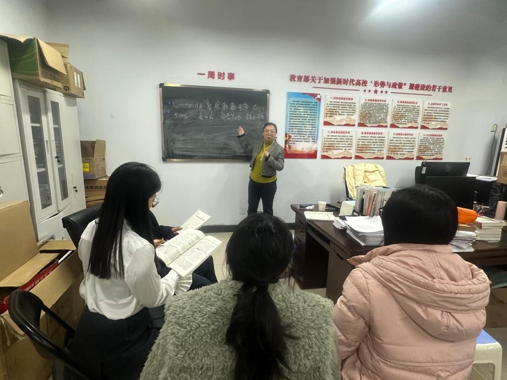 11月4日,bw必威西汉姆联官方网站介绍教研室举行集体备课会,聚焦《加快发展新质生产力》专题开展示范教学活动。教研室主任吕洛乐以思专融合理念结合专题内容进行教学展示。