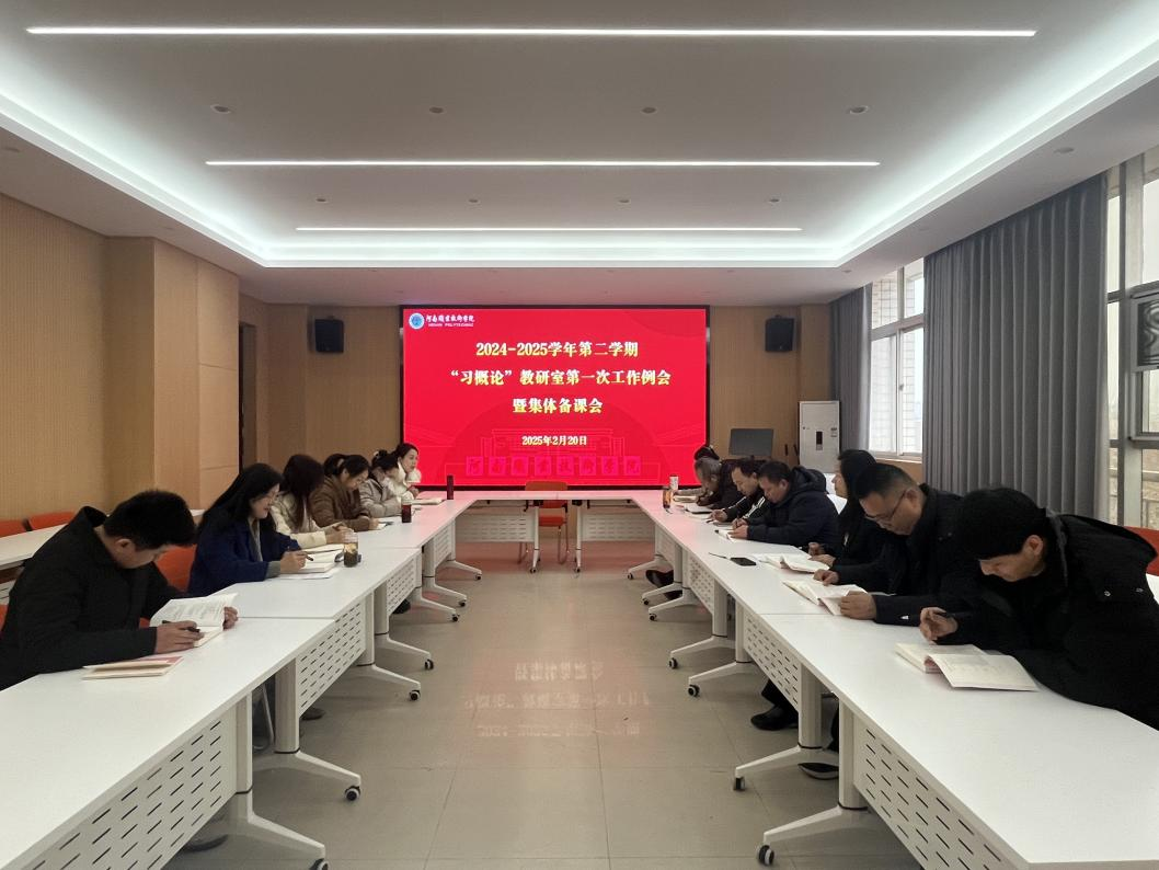 为进一步提升思想政治理论课教学质量,确保新学期各项教学工作的顺利开展,“习概论”教研室全体成员于2月20日下午,在510会议室召开了第一次教学工作例会暨开学第一课集体备课会,会议由教研室主任张倩主持。